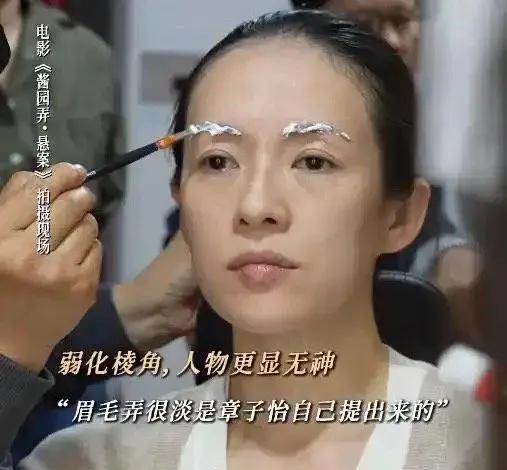 章子怡为了在形象上更贴近《酱园弄》里的詹周氏,不惜抛下明星包袱自毁形象刻意扮丑,45岁的她素颜也能扛住镜头,即便脸上画了触目惊心的红色胎记依然眉清目秀, 清澈却麻木的眼神让观众面对这个残忍的女嫌疑人,不但没有害怕反而心生怜悯,觉得她一定是被逼的有苦衷,詹周氏的形象一下子就立住了,虽然电影还没有上映, 暂时无法评价她的演技,单从外形上看过关了。